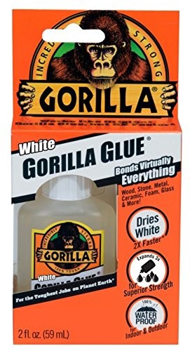 Gorilla Glue Strength In A Dries White Formula. Ideal For Most Household Projects, Gorilla Glue Is 100 % Waterproof Glue, Safe For Indoor and Outdoor Use And Strong Enough To Stand Up To The Elements. Know For Its Industrial Holding Power And Versatility. Dries White: 2 Times Faster, Incredibly Strong: Expands 3 Times Into The Material To Form A Incredibly Strong Bond. Bounds: Wood, Stone, Metals, Ceramic, Foam, Glass and More.