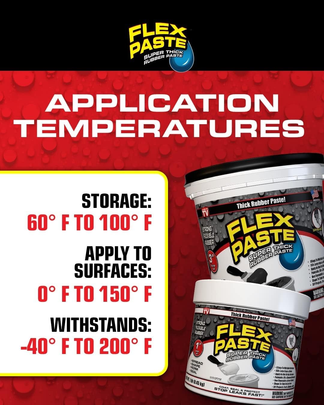 Flex Paste Is A Super Thick Rubberized Paste That You Can Spread, Shape, Form And Seal Virtually Everything. Starts Out As A Thick Paste And Dries To A Strong, Flexible, Rubber Coating. It Can Be Applied To All Types Of Surfaces To Seal Out Air, Water And Moisture. It Clings To The Surface And Instantly Fill Large Gaps, Cracks And Holes. It Wont Shrink Or Wash Away. Can Be Painted To Any Colour. Can Be Apply On Wet Or Dry Surfaces And Even Underwater. Expand And Contracts Never Shrink Or Cracks. Perfect For DIY Projects Crafts, Hobbies And More. Withstand A Wide Range of Temperature From - 40 F To 200 F Once Fully Cure(Apply In Temperature Between 0 -150F). Seals Out Elements. Fits Standard Caulking Gun Not Included. Work On Wood, Glass, Tile, Concrete, Aluminium, Metal, Brick, Stucco, Masonry, Copper, Fabric, Fiberglass, ceramic, Porcelain, Natural Stones, Roofing, PVC, EIFS, EDPM, CSPE, Hypalon Polyurethanes And Much More. Paintable, Non - Flammable, Never Shrinks, UV, Chemicals And Mildew Resistant.