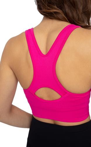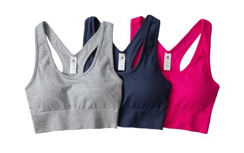 Stay cool and focused in your new favorite sports bra from 90 Degree by Reflex. It is a seamless performance sports bra with removable cups, moisture-wicking, and a ribbed design. This pack includes 3 units, choose your favorite color and size.