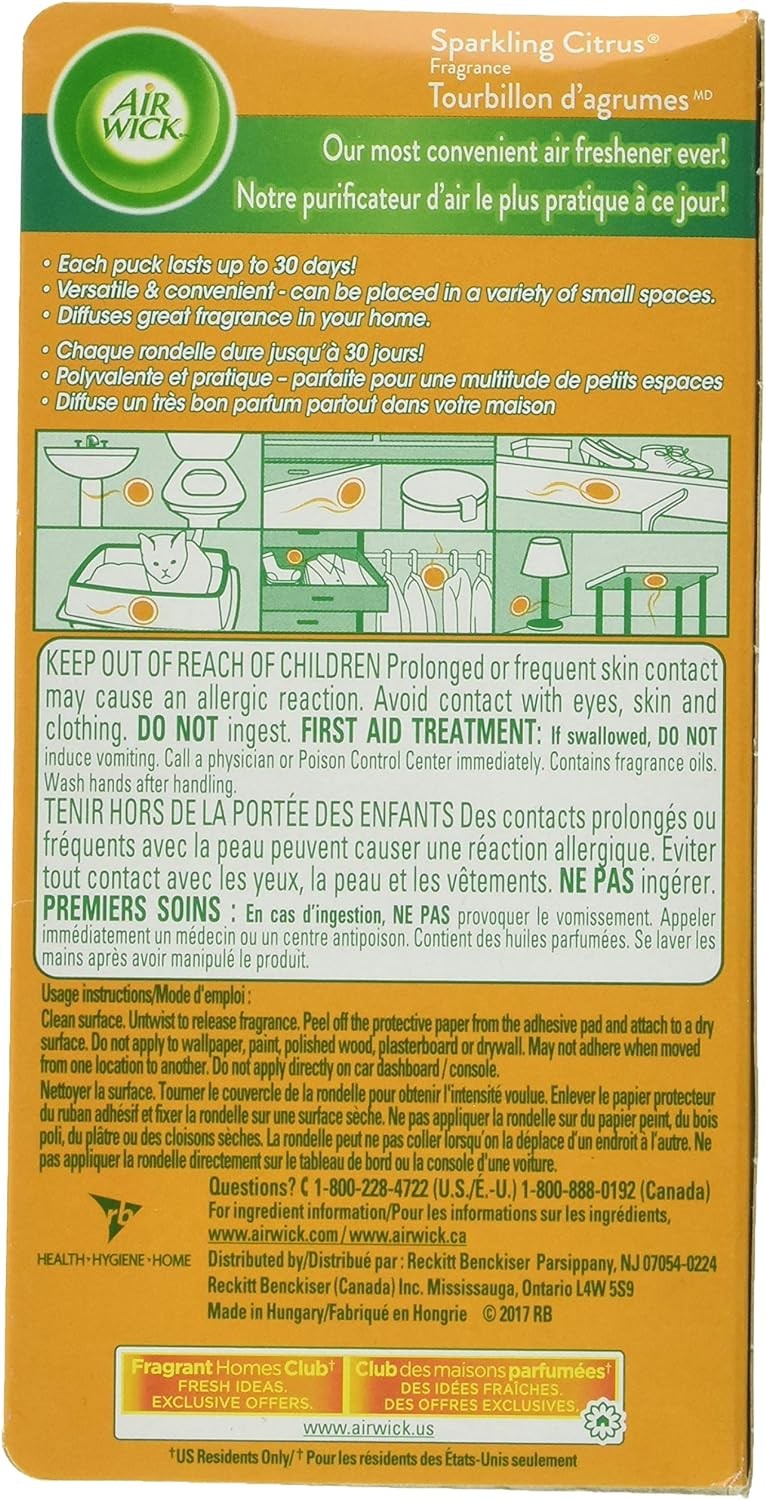 Air wick stick ups solid air fresheners are a versatile and convenient solution to great fragrance in small spaces. Place them at the source of odors around the house such as in the bathroom, next to the cat's litter box, or in the trash can. Each puck can last up to 30 days, and 2 pucks are included in each package. Captures the crisp, tangy freshness of fresh grapefruit, bursting with hints of lemon and lime.