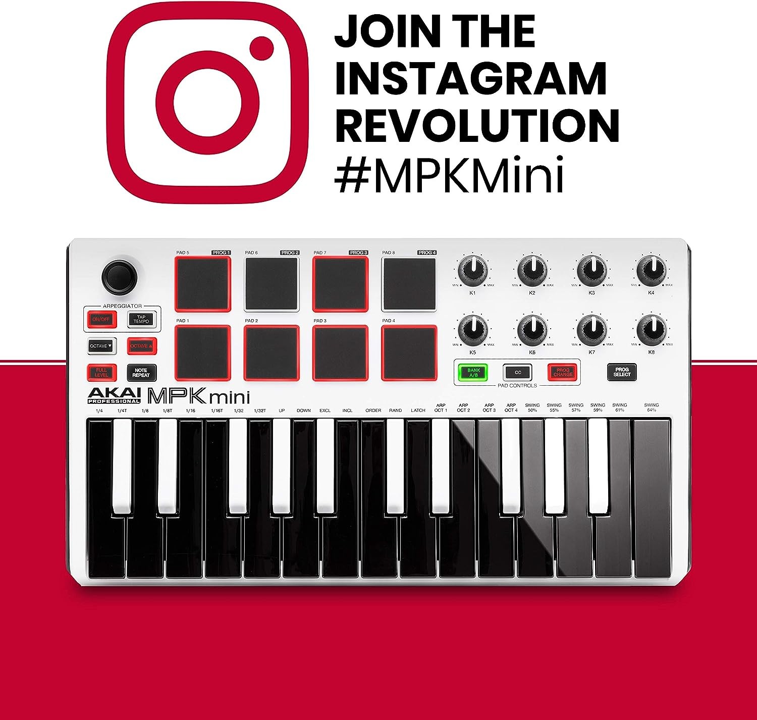 The new MPK Mini MKII is an ultra-compact keyboard controller designed to easily fit in the laptop-toting musician’s backpack and still earn its spot on the desktop producer’s crowded table space. For maximum portability, the MPK Mini MKII requires no software drivers or external power adapter for operation. It supports plug-and-play connectivity, features USB-MIDI, and powers up with a single USB connection to your computer. With an array of hardware controls, the MPK mini MKII lets you record, compose, and perform with virtual instruments, effect plugins, and Digital Audio Workstations whenever inspiration strikes. It features 25 velocity-sensitive synth-action keys, a 4-way thumbstick for dynamic pitch and modulation manipulation, 8 backlit velocity-sensitive MPC-style pads, and 8 assignable Q-Link knobs. Plus, two banks expand the number of MPC-style pads to 16 for extended creative capabilities. The MPK mini MKII includes all the essentials for quickly laying down and expanding upon your musical ideas. Finally, it comes bundled with professional production software and virtual instruments free downloads for immediate music creation.