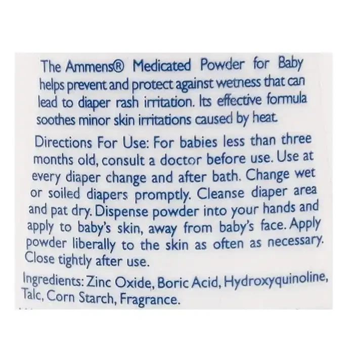 Ammens baby Formula gives you All-Day Protection with a blend of pure, absorbent powder and natural zinc to relieve and soothe itchy skin.