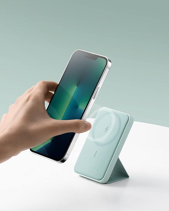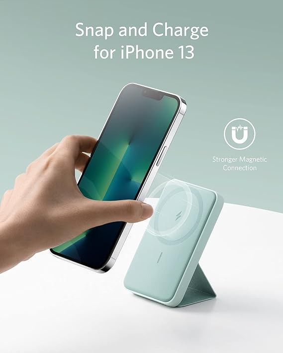 Anker 622 Magnetic Wireless Portable Charger (MagGo), 5000mAh Foldable Magnetic Battery and USB-C for iPhone 13/12 Series (Buds Green)