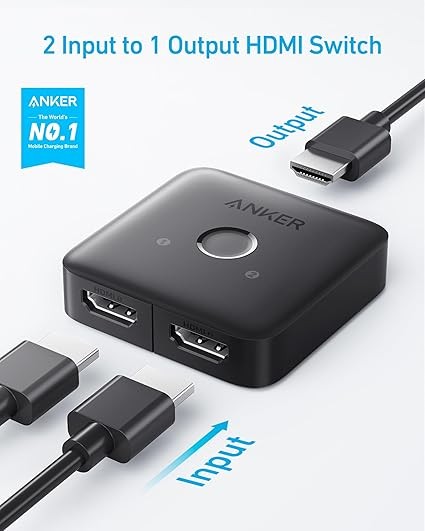 Anker HDMI Switch, 4K@60Hz HDMI Splitter, 2 in 1 Out with Smooth Finish, Supports HDR, 3D, Dolby, Compatible with Laptops, PC, Xbox Series, PS5 / PS4, Projector, and More