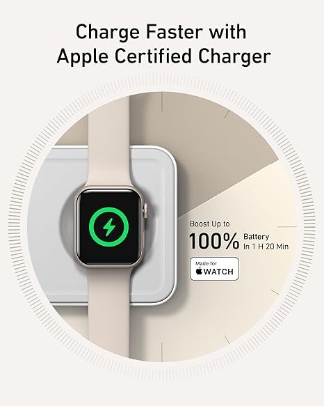 Apple Certified Quick Charger: Boost your Apple Watch Series 9 to 30% in just 20 minutes—ideal for a fast charge before bed, ensuring it's ready to monitor your sleep all night.