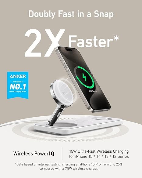 Anker MagGo Wireless Charging Station (3-in-1 Pad), 40W USB-C charger, 5 ft (1.5 m) USB-C to USB-C cable, welcome guideAnker MagGo Wireless Charging Station (3-in-1 Pad), 40W USB-C charger, 5 ft (1.5 m) USB-C to USB-C cable, welcome guide