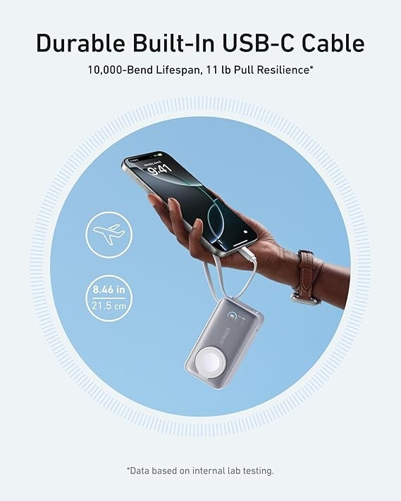 Anker MagGo Power Bank for Apple Watch Only,Officially Certified 10,000mAh Compact Battery Pack with Built-in USB-C Cable, 35W Max, for iPhone 16/15 Series, iPad, AirPods, and More