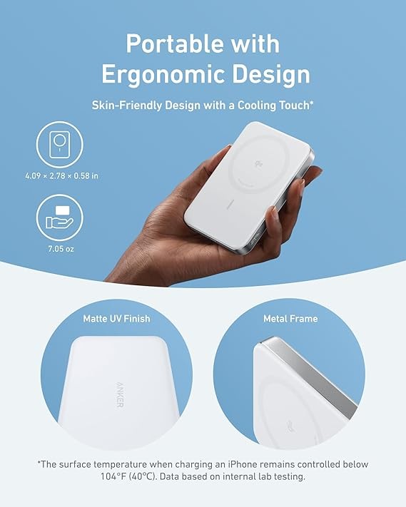 Ultra-Fast 15W Wireless Charging: Keep your devices fully charged wherever you go with 15W Qi2-certified wireless output, which charges an iPhone 15 Pro from 0 to 50% in 51 minutes. It also features a 30W USB-C port for extensive compatibility.
