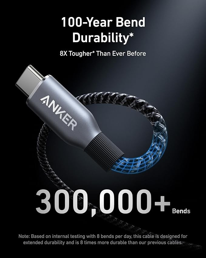 Anker Prime USB C to USB C Cable, 240W 3 ft Fast Charging USB C Cable, Upcycled-Braided Nylon with 100-Year Bend Durability, USB 2.0 Cable for iPhone 16/16 Pro/16 Pro Max/16 Plus, MacBook, Galaxy S24