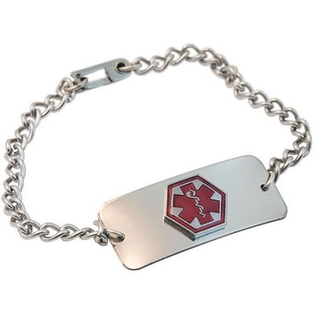 Let health professional know your allergies or any existing conditions. Medical alert bracelets are a must-have for anyone with allergies or health conditions. Our medical ID bracelets let responders know of any condition which can help save your life in an emergency. The simple medical bracelet is comfortable for daily wear and won't draw attention to your condition unless needed. The medical alert jewelry includes an emergency ID card that fits in any wallet. You can add additional information about your ailment as well as contact info.