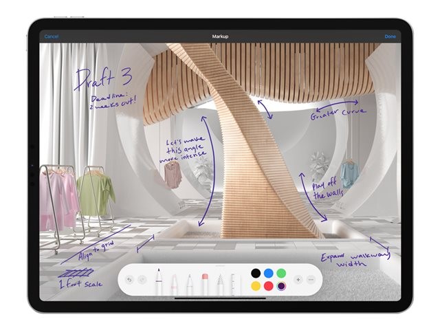 With M1, iPad Pro is the fastest device of its kind. It's designed to take full advantage of next‑level performance and custom technologies like the advanced image signal processor and unified memory architecture of M1. And with the incredible power efficiency of M1, iPad Pro is still thin and light with all‑day battery life, making it as portable as it is powerful.