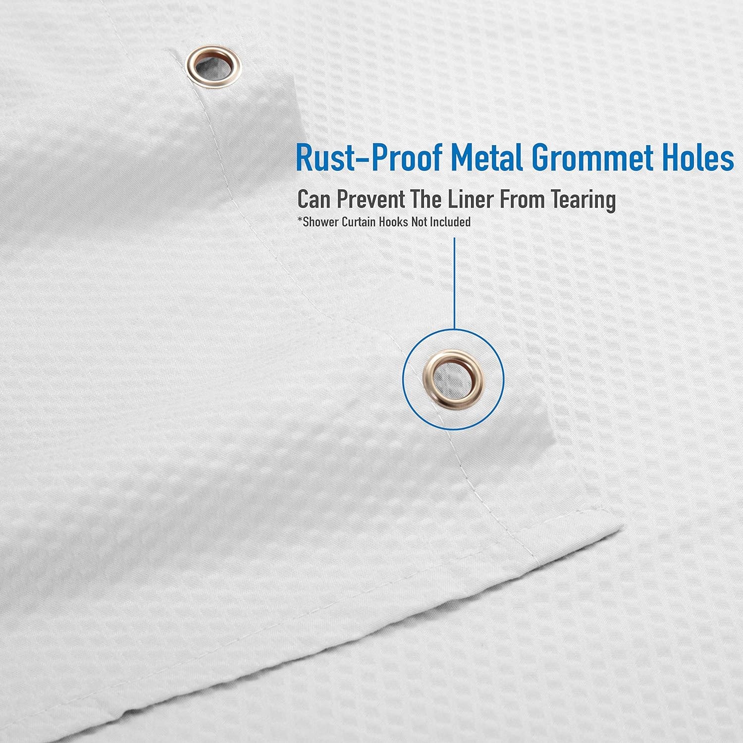 Bath Bliss' Heavy Grommet Liner made of 100% PVC is a durable, long lasting liner that is mildew resistant, keeping your shower and bathroom clean. 3 large magnets on the bottom of the liner helps keep it in place, and the 12 metal reinforced eyelets prevents tearing at the top. Liners allow light to pass through but detailed images cannot be seen through them.