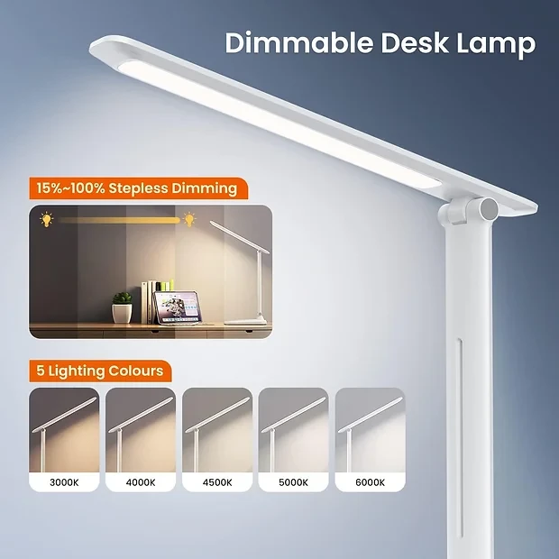 • 【3-Keys Touch Control】3 up to date keys are convenient for touch control. Key I/O: click to turn ON/OFF the office lamp. Key Ⓜ: click to change the lighting color from warm to cool. Key ?: long press to adjust the lighting brightness (stepless from 100% to 15%). Whether you want a soft, warm glow to relax in the evening or a brighter light to focus on work, this lamp has it all!