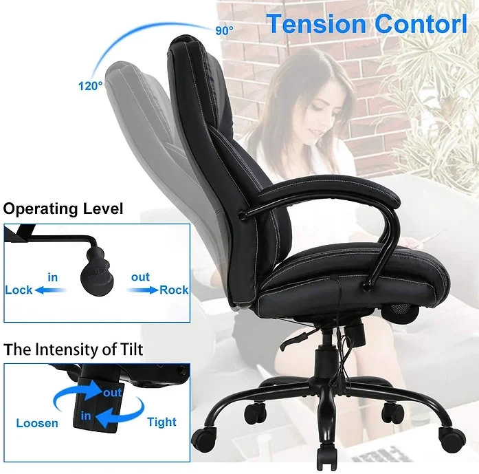 • ✜【Adjustable Height and Backrest Work Chair】This comfy computer chair includes center-tilt control for great support when reclining and gas lift seat height adjustments. On top of that, the back can be reclined from 90 degrees to 120 degrees so that you can find the optimal position and enjoy a sublime experience every time you. Use this comfort powerhouse for productive work time, exciting gaming time, or a cozy nap. Big & Tall Heavy Duty Executive Chair Task Swivel Computer Chair