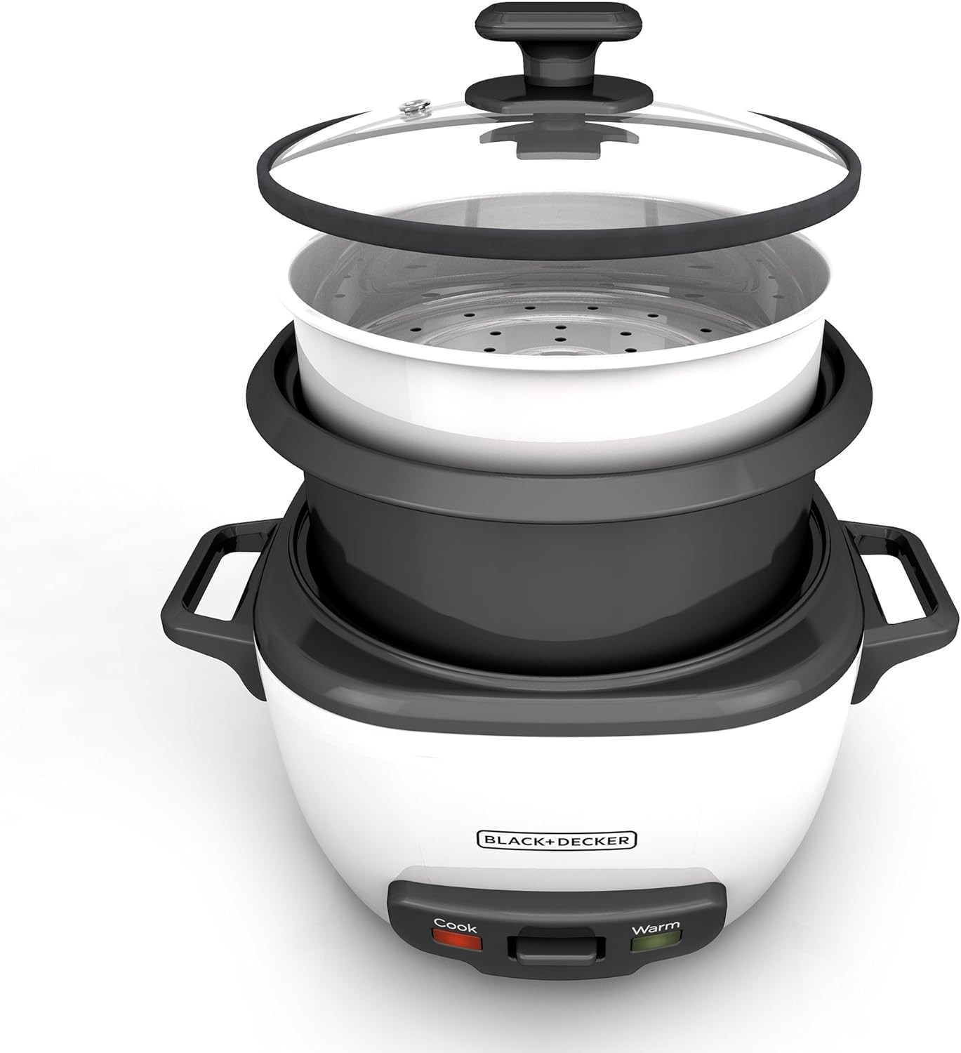 BLACK+DECKER 3-Cup Electric Rice Cooker with Keep-Warm Function, White, RC503