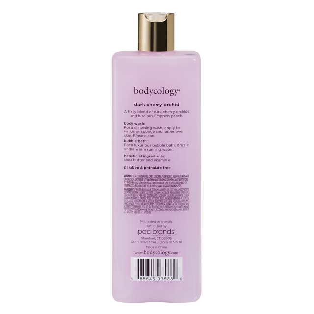 Bodycology’s Dark Cherry Orchid scent is a flirty blend of dark cherry orchids and luscious Empress peach. Bodycology’s 2 in 1 Body Wash & Bubble Bath delivers luxurious fragrance in both bath and shower. Enriched with Shea Butter and Vitamin E to leave skin feeling cleansed and moisturized.