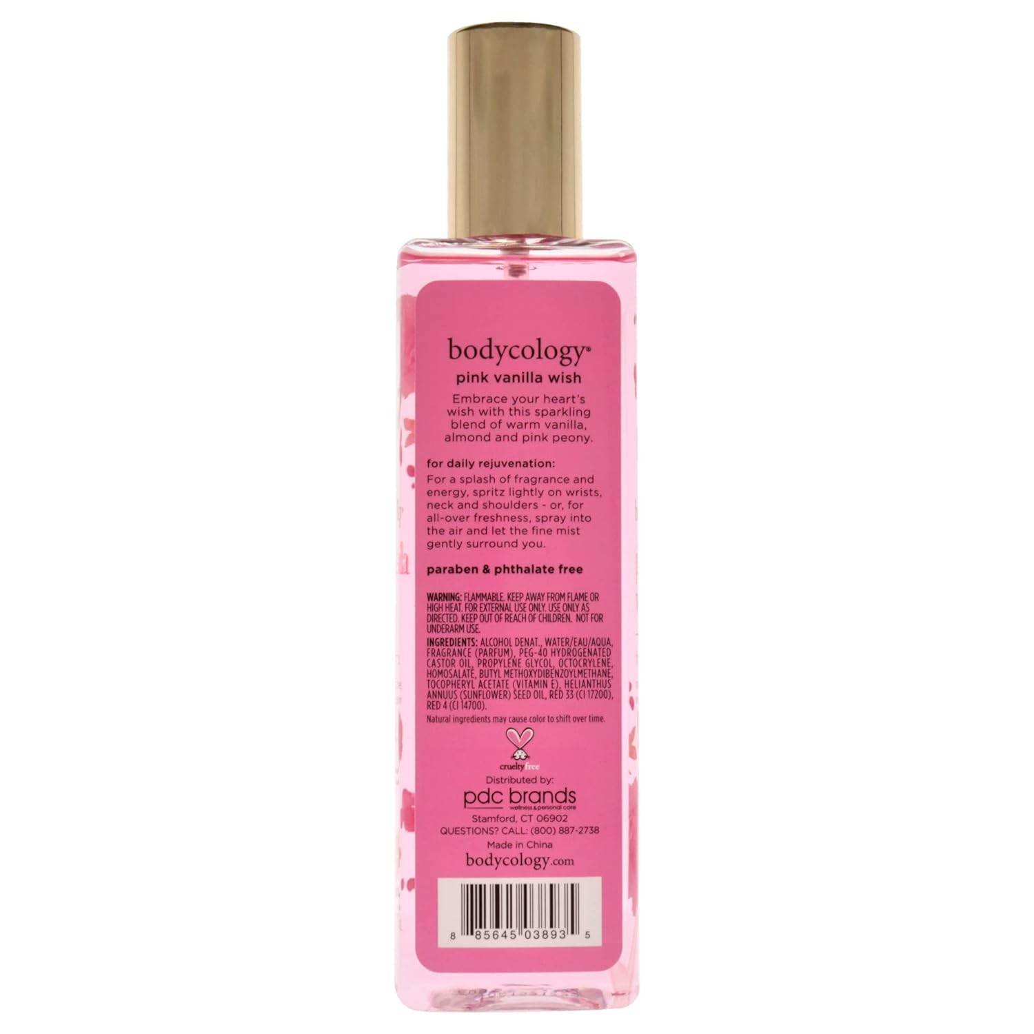 bodycology Pink Vanilla Wish Perfume by bodycology. A beautiful warm vanilla scent with a splash of magic in the mix. Let the warmth of this blend embrace you as you make your way through your day or evening. This body spray is refreshing and exciting to wear. Full of life with a blend of vanilla bean, almond milk, and pink peony blossoms. All products are original, authentic name brands. We do not sell knockoffs or imitations.