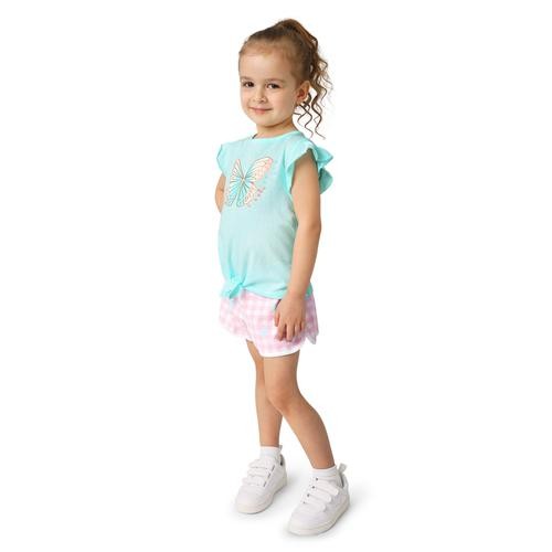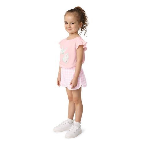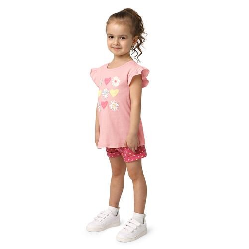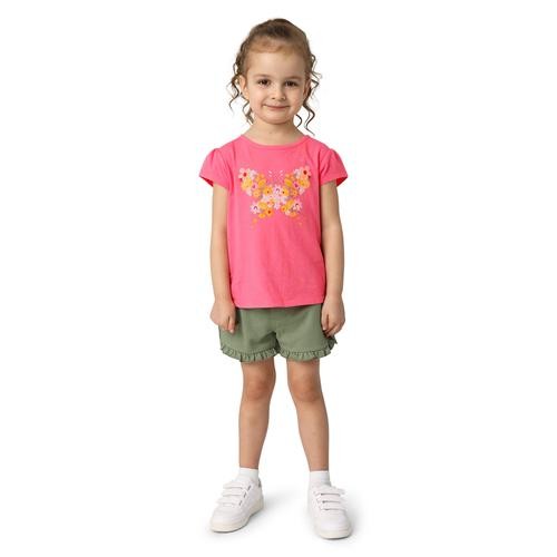 This pretty summer outfit for a girl will make her look casual and fashionable to play with her friends or go out to the park. It consists of 3 blouses with a round neck and differentiated short sleeves, as well as 3 shorts with front pockets and an elastic waist.