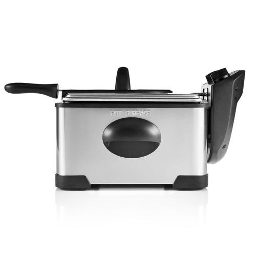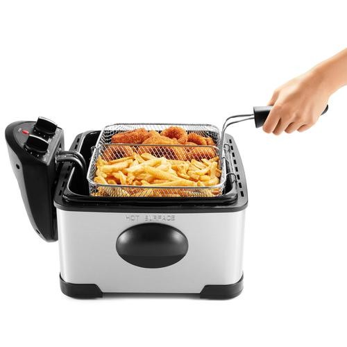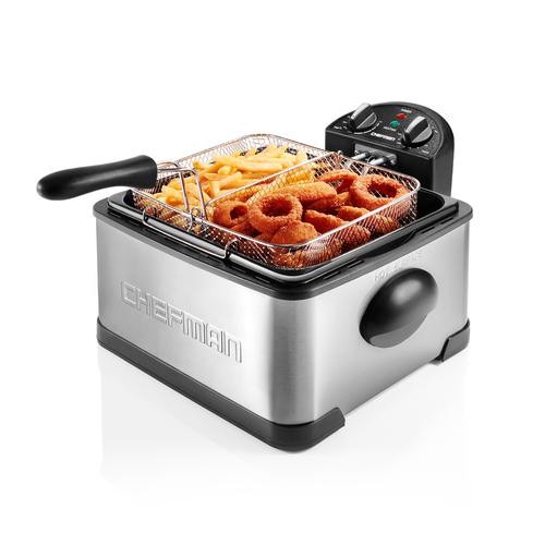 With the Chefman Jumbo Electric Deep Fryer, you can make high-quality fried foods for the family right at home, any day of the week. This fryer is built with an XL 4.5L basket capacity to fry hefty portions of food all at once helping to save you time. With easy-to-use temperature control, a timer, and a viewing window on the lid, this stainless-steel deep fryer turns out perfectly cooked food every time. The extra-large sized four-and-a-half liter capacity can be utilized with a large fryer basket, versatile enough whether eating alone or preparing a family meal.