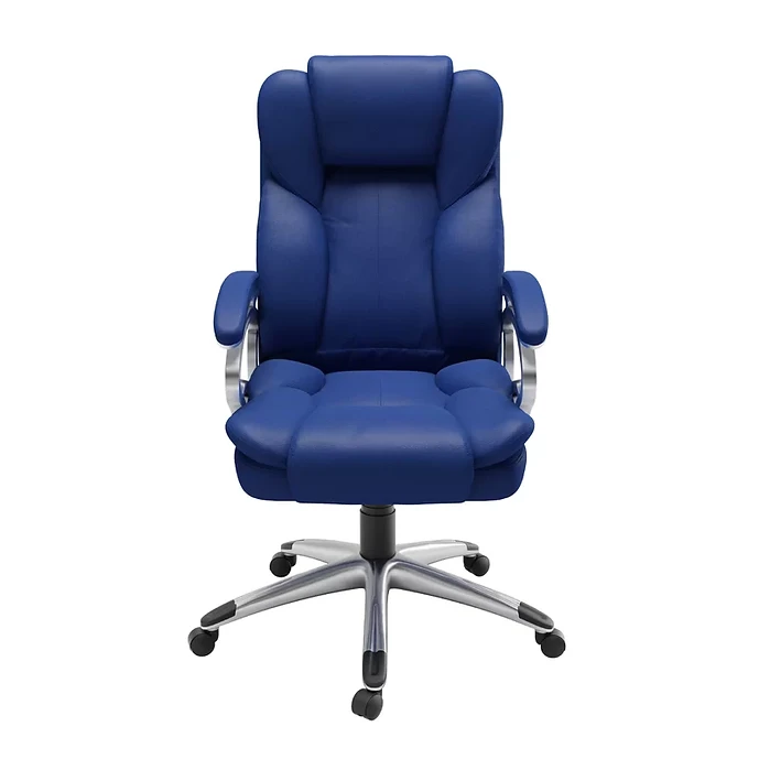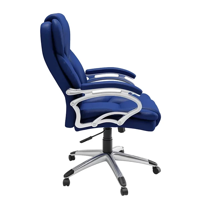 Style your home desk with the executive styled office chair from Orren Ellis. Easy to care leatherette with contoured lumbar support adds, comfort and style to any home office. Features include foam padded tilting backrest, foam padded seat, armrests, and rolling wheels. An ergonomic gas lift adjusts the seat to your body height and shapes with ease. A great addition to any home!