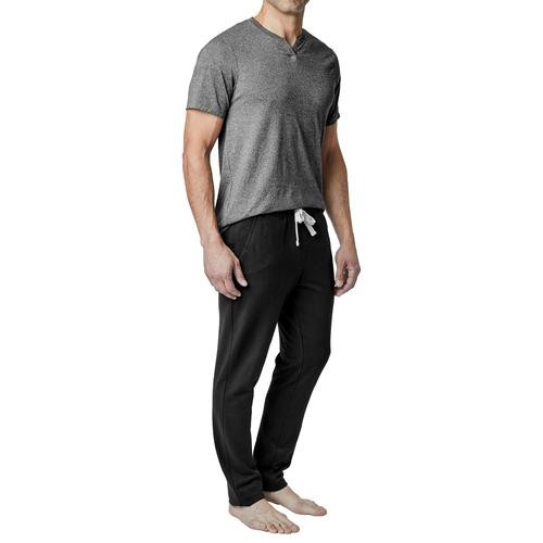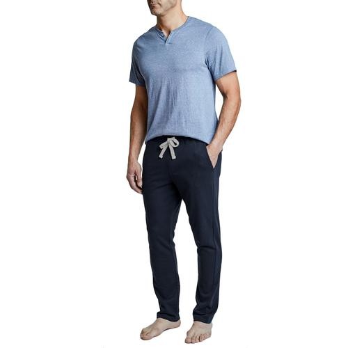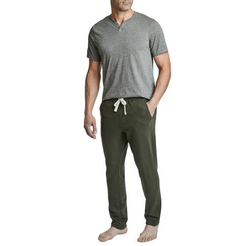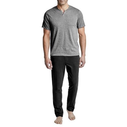 Feel comfortable and stylish in this men's pajama set from Copper and Oak, it consists of a soft, notch-collared, short-sleeved shirt and loose-fitting, breathable pants with drawstring waist adjustment.