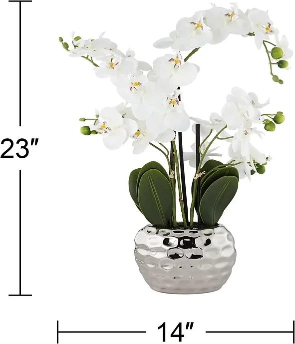 • Use for a bright and cheerful pop of color in a bathroom, living room, and more. Looks good all year round. Makeover Indoor home decor with this large and beautiful, artificial faux-fake potted flower plant. High quality plastic construction maintains its color and vibrancy over multiple years. Designed for tabletop centerpiece arrangements.