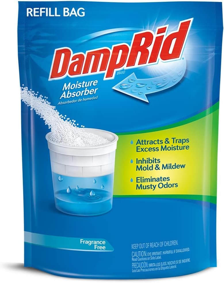 The DampRid Bag Refill Bag is designed for a DampRid moisture absorber, which eliminates musty odors caused by excess moisture. Good for 4 refills in a 10.5 oz refillable moisture absorber. Provides up to 45 days of moisture control.