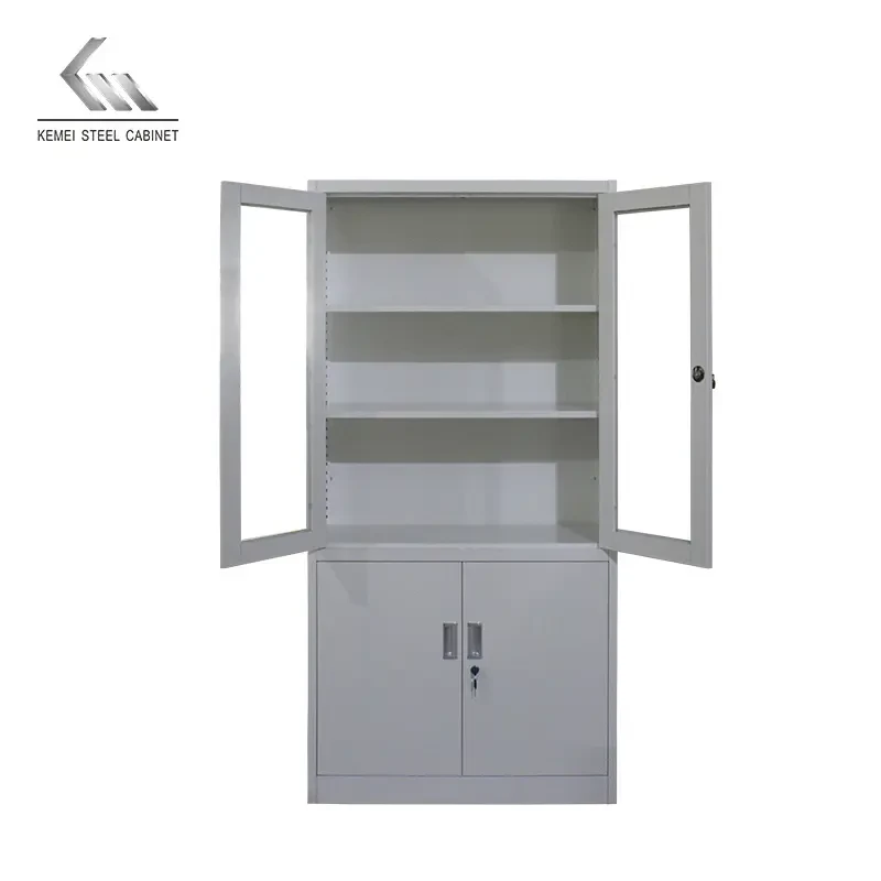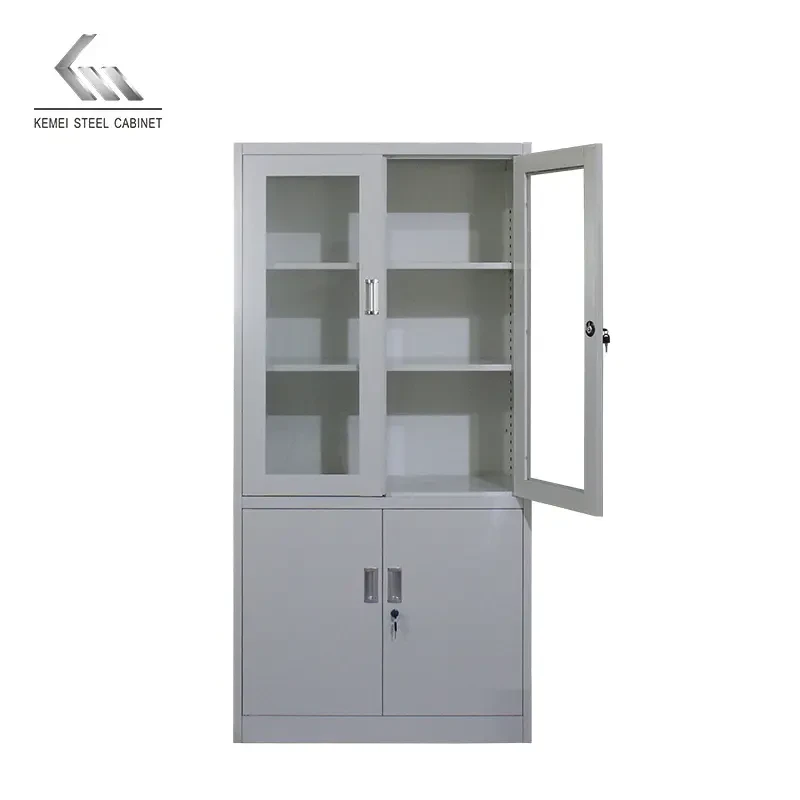 Danmayer 5 Shelf Cabinet w/ Glass and Swing Doors (Grey)