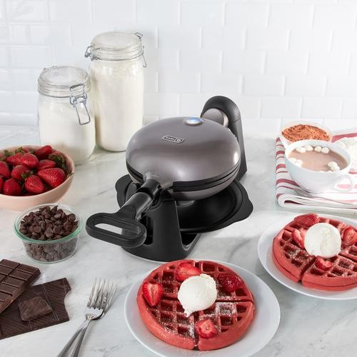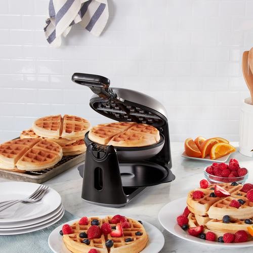 This Flip Belgian Waffle Maker is fun and easy to use for single-serving breakfasts or shareable snacks—just add your favorite toppings and dig in! It heats quickly and evenly with no assembly required. The Indicator Lights show you when to pour the batter and when your waffle is ready to eat. Add batter, flip and enjoy 1” thick, restaurant-style waffles at home! TruGlide nonstick cooking surfaces prevent sticking so waffles lift easily, and the dishwasher-safe Drip Tray makes cleanup a breeze.