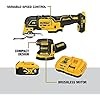 • Included components: (1) DCW210 20V MAX* XR 5 IN. Brushless Cordless Variable-Speed Random Orbital Sander; (1) DCS356 20V MAX* XR Brushless Cordless 3-Speed Oscillating Multi-Tool; (1) DCB205 20V MAX* XR 5Ah Battery; (1) DCB118 8 Amp Fast Charger