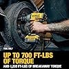 • 1/2 inch cordless impact wrench has up to 700 ft-lbs of max torque and 1200 ft-lbs of max breakaway torque