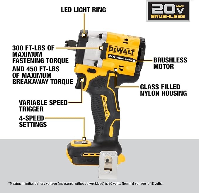 DEWALT ATOMIC 20V MAX* 1/2 in. Cordless Impact Wrench with Hog Ring Anvil (Tool Only) (DCF921B)