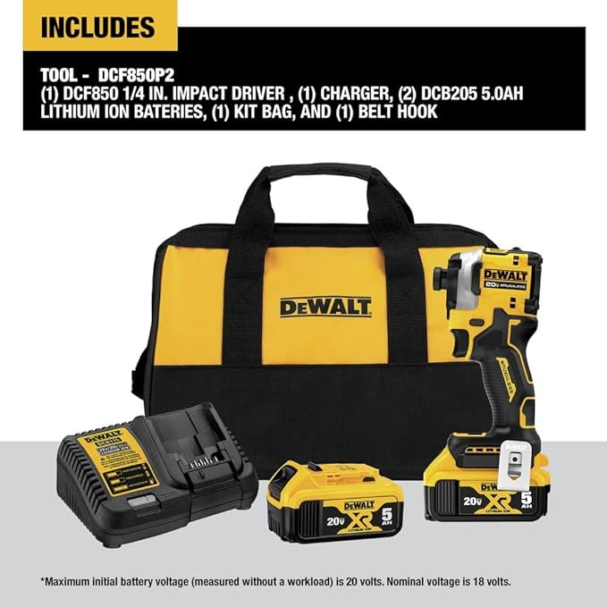 DEWALT Atomic 20V MAX* 1/4 in. Brushless Cordless 3-Speed Impact Driver Kit (DCF850P2)
