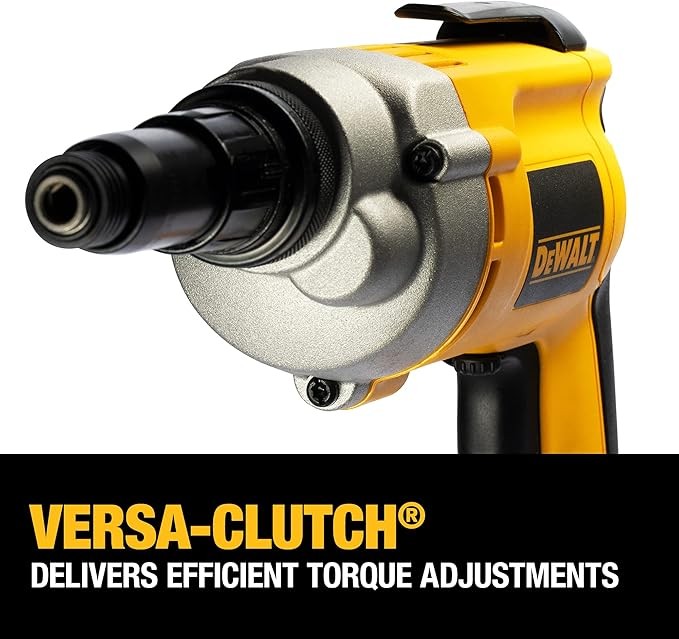 • Versa-Clutch torque adjustment system of the drywall screw gun dials in the proper torque needed to efficiently drive fasteners without stripping or breaking
