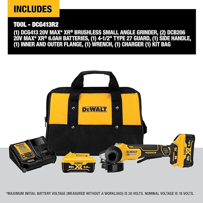 • DCG418X2 Angle Grinder has up to 30% more power than the DCG414 60V MAX* Grinder with 2300 max watts out**