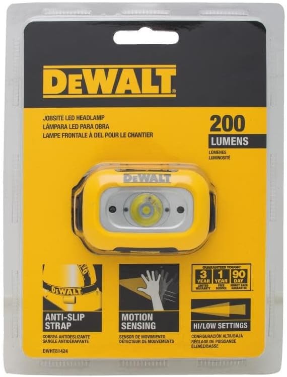 DEWALT Headlamp for Jobsite, 200 Lumen (DWHT81424), Yellow