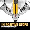 • Stainless-steel miter detent plate with 14 positive stops delivers repeatable accuracy and worksite durability for the 12-inch miter saw blade.