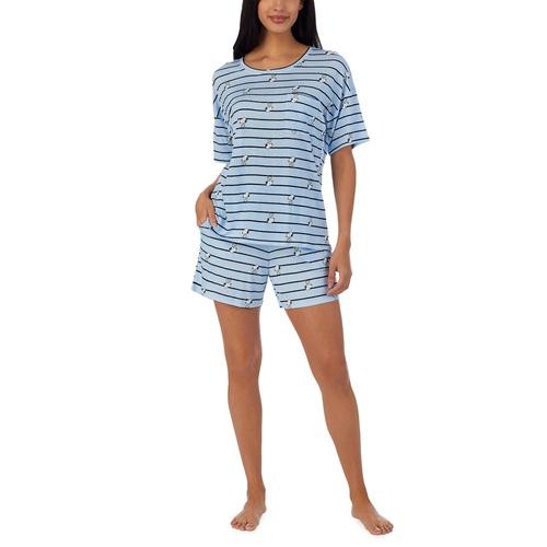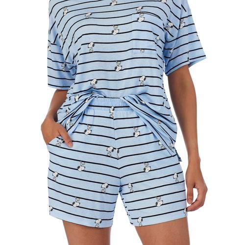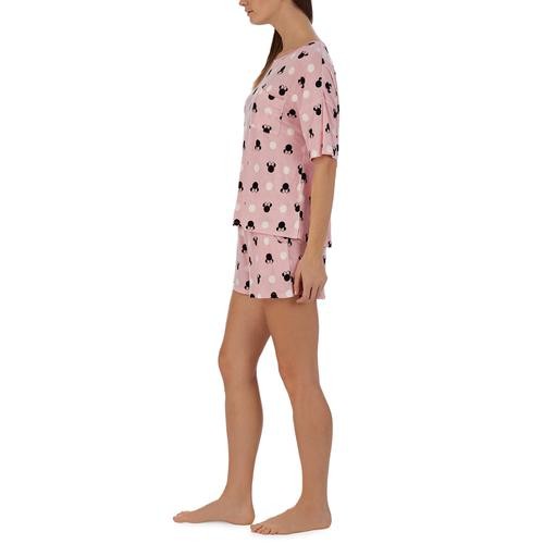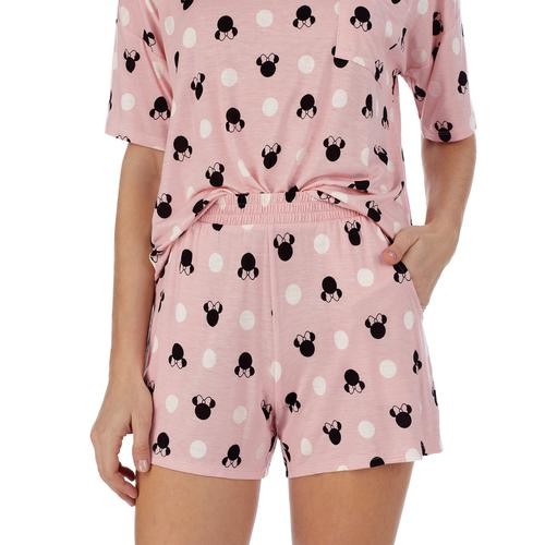 Sleep relaxed and comfortable in this fun Disney print two-piece loungewear set for ladies. This soft, loose-fitting top with elastic shorts at the waist is the perfect attire for relaxing. It features short sleeves, a chest pocket, stretch waistband with gathers and pockets.