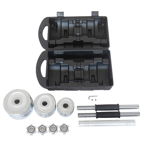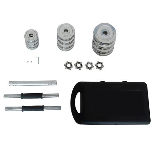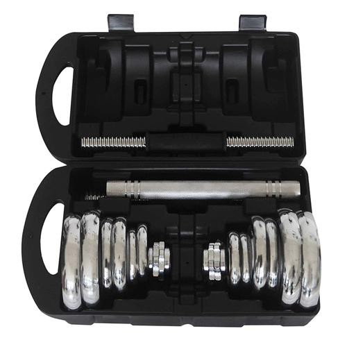 With this dumbbell set you can be in shape from home or anywhere. They are easy to assemble and you can use them alone or together. They come with 4 0.5 kg discs, 4 1.25 kg discs and 4 2.5 kg discs with chrome rack and nuts with a weight of up to 44 pounds or 20 kgs. It has a double function design and is assemblied in just seconds.