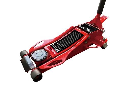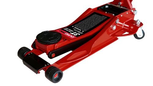 Hydraulic trolley jack is designed to lift, but not support, one end of a vehicle. Immediately after lifting, loads must be supported by a pair of appropriately rated jack stands. Extreme low profile and heavy duty construction. Dual pump provide quick lifting function. Tool tray for quick storage. Rubber Pad. After use wipe dry with a clean cloth. Then, store the Jack in a safe, dry location out of reach of children and other non-authorized people.