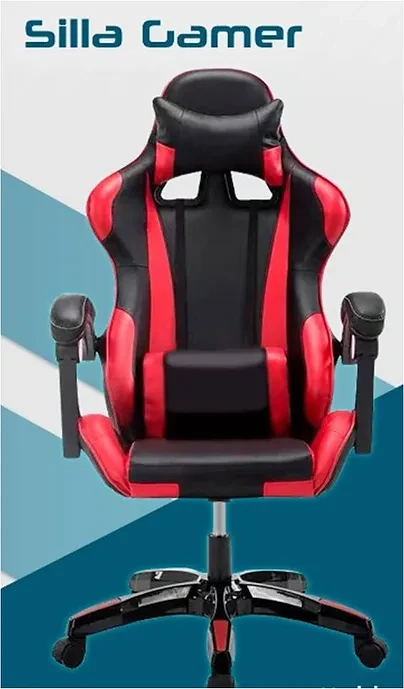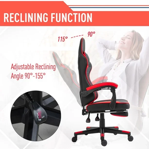 Gaming Chair Racing Office Computer Ergonomic Video Game Chair Backrest and Seat Height Adjustable Swivel Recliner with Headrest and Lumbar Pillow Esports Chair (Black + Red)
