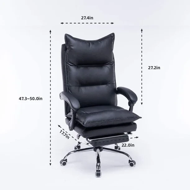 Product Description EROMMY High Back Office Chair,PU Leather Executive Desk Chair, Adjustable Ergonomic Swivel Task Chair SpecificationColor: WhiteSurface material: PU leatherDimension: 17.7'' x 27.4'' x 47.3''DescriptionThe Ergonomic design can give full support of your back and lumbar. The thickened non-slip comfort pad relaxes the hips, and bear the pressure of sitting for a long time.High quality desk chair made with an integrated frame, a heavy duty metal base, an explosion-proof gas spring and smooth-rolling casters.