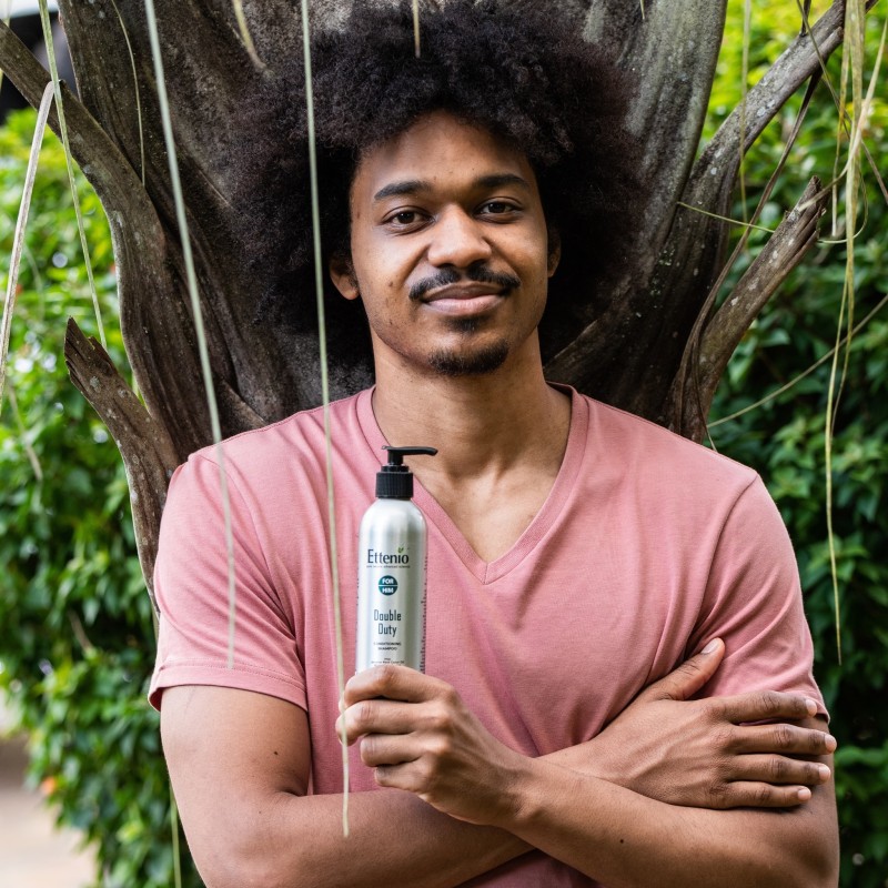 The Double Duty has powerful ingredients like Jamaican Black Castor Oil, Vitamin B5, Jamaican Sugar Cane Extract, and a blend of over 13 herbs like Rosemary, Nettle, Lavender, and Horsetail to encourage hair health and growth.