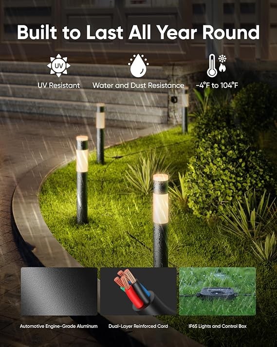 Durable and Weatherproof: Constructed with strong parts and premium aluminum, these IP65 weatherproof lights can withstand the elements and operate reliably from -4°F to 104°F, lasting over 50,000 hours.