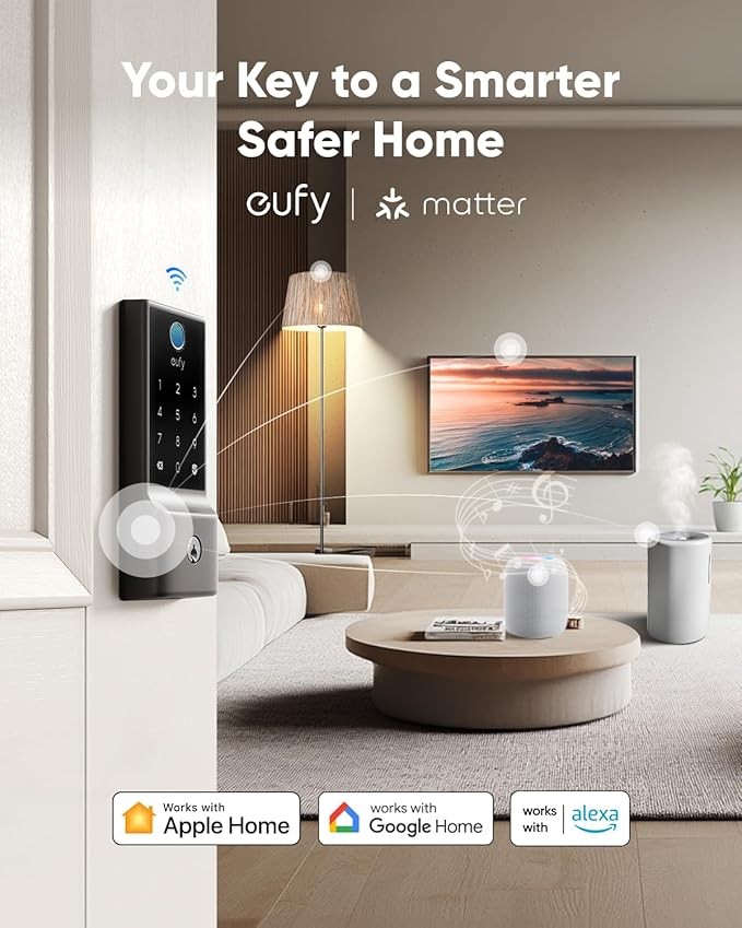 Apple Home Support: The eufy Smart Lock E30 is designed to work directly with your existing hub, offering seamless integration with Apple Home, Google Home, Alexa, and SmartThings. This allows for multiple unlocking options and easy integration with a range of smart home devices for automation.