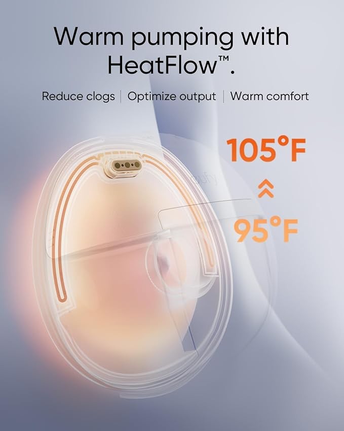 The Only Wearable Breast Pump With Heating: Our innovative HeatFlow technology incorporates a built-in heating element and a precision temperature sensor. Experience uniform warmth as the soft silicone gently warms up during pumping. Choose from seven adjustable heat settings (ranging from 95°F to 105°F) to enhance milk flow and prevent clogs. Enjoy a skin-like pumping experience that prioritizes comfort.
