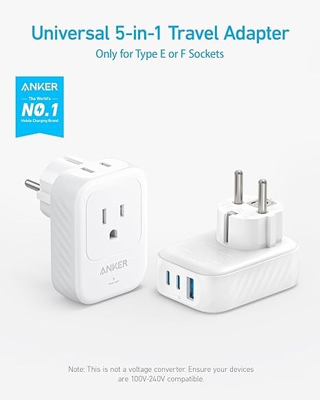 Your European Travel Essential: Designed for the savvy traveler, this grounded European (Type E/F) adapter is your perfect companion for visits to France, Germany, Spain, and beyond, ensuring you stay connected. Please note that this is not a voltage converter.