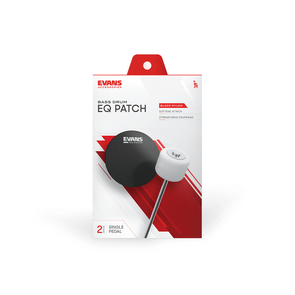 Evans EQPB1 is a black non-slip flexible nylon bass drum patch which softens attack and strengthens the head without affecting sound quality.