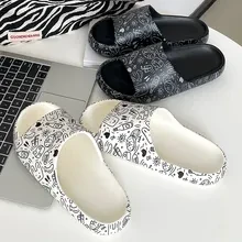 Fashion Men Slippers Summer Beach Sandals Printing Home Bathroom Anti Slip Shoes Suitable Indoor and Outdoor