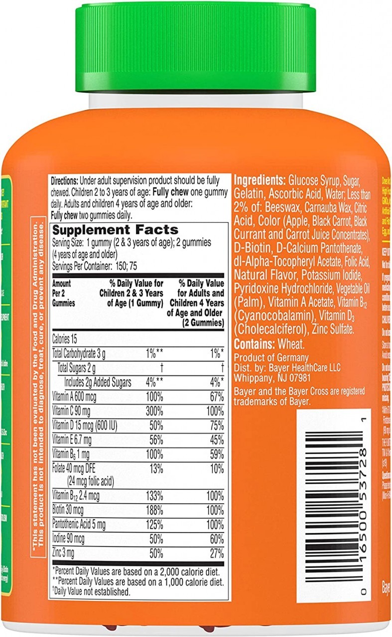 • Directions: Under adult supervision, product should be fully chewed. Children 2 & 3 years of age: Fully chew one gummy daily. Adults and children 4 years of age and older: Fully chew two gummies daily.